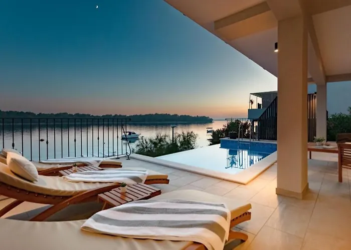Waterfront Villa Marija By Villas Guide er strandudsigt indkvartering i Brnistrova med en swimmingpool. Der tilbydes en terrasse med udsigt over havet.